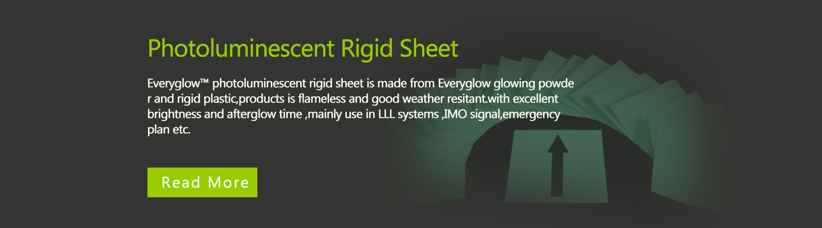 After few years reserch & develop now we success in launch Photoluminescent pigment, photoluminescent vinyl, photoluminescent rigid sheet,photoluminescent egress systems, photoluminescent textile, photoluminescent landscape decoration products etc.